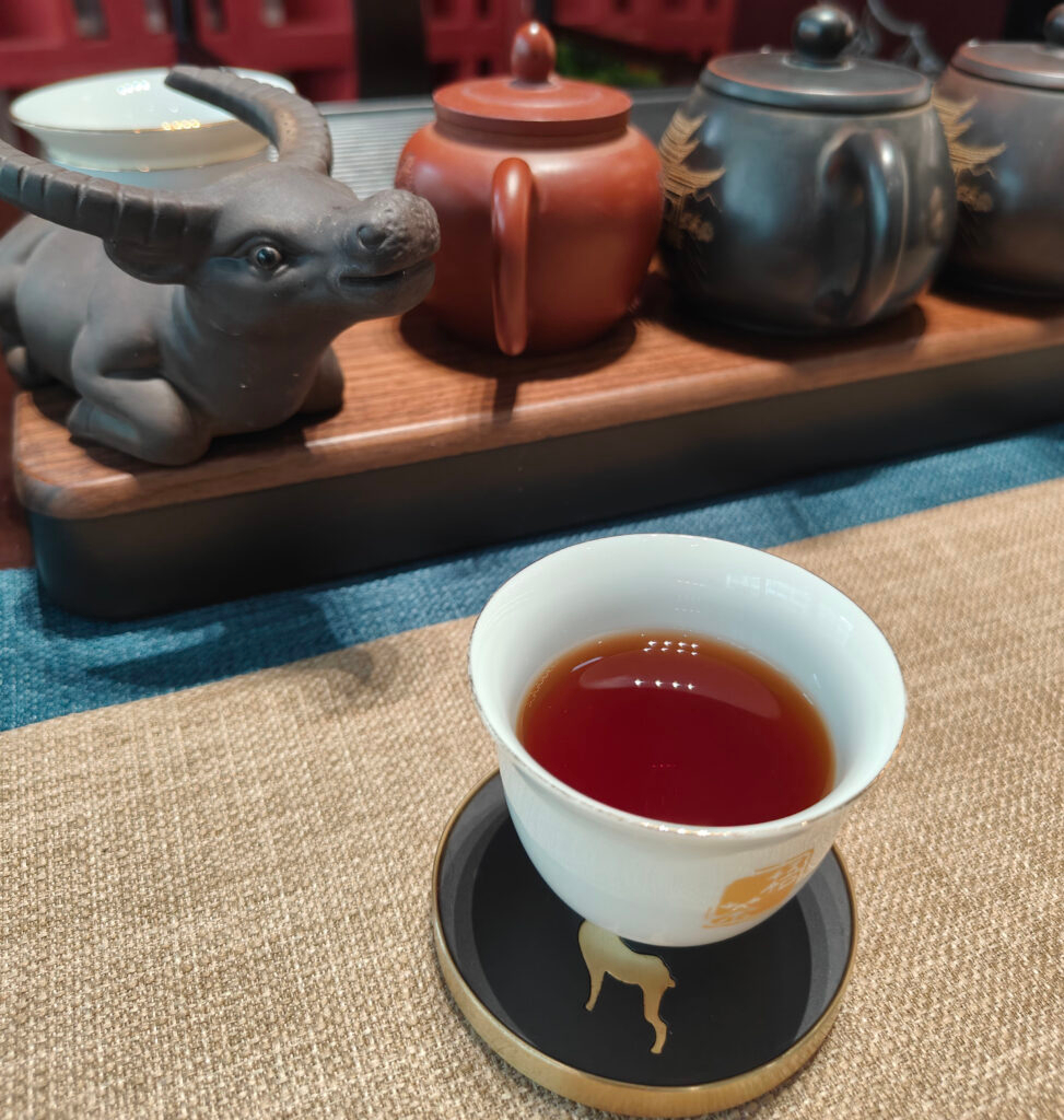 After brewing, don’t rush to drink! First, take a moment to smell the tea. Liubao tea’s characteristic aged aroma and woodiness will gradually fill the air. Before you sip, enjoy that soothing aroma. Then slowly taste, allowing the tea to unfold on your palate. The sweet aftertaste is long-lasting, and the flavor lingers in your mouth.
