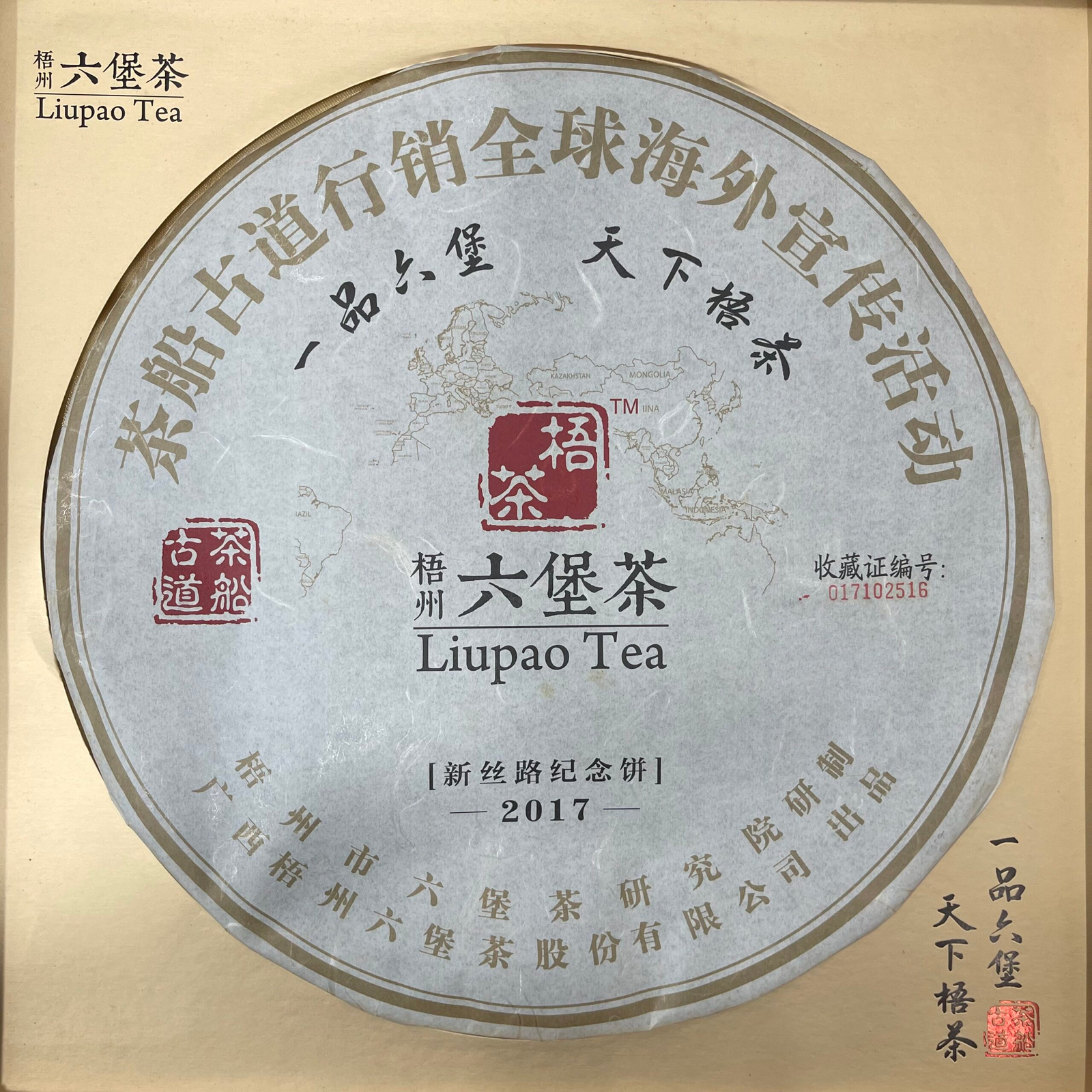 This product is created by Guangxi Wuzhou Liubao Tea Co., Ltd. to commemorate the global promotion event of the “Tea Boat Ancient Road”.
