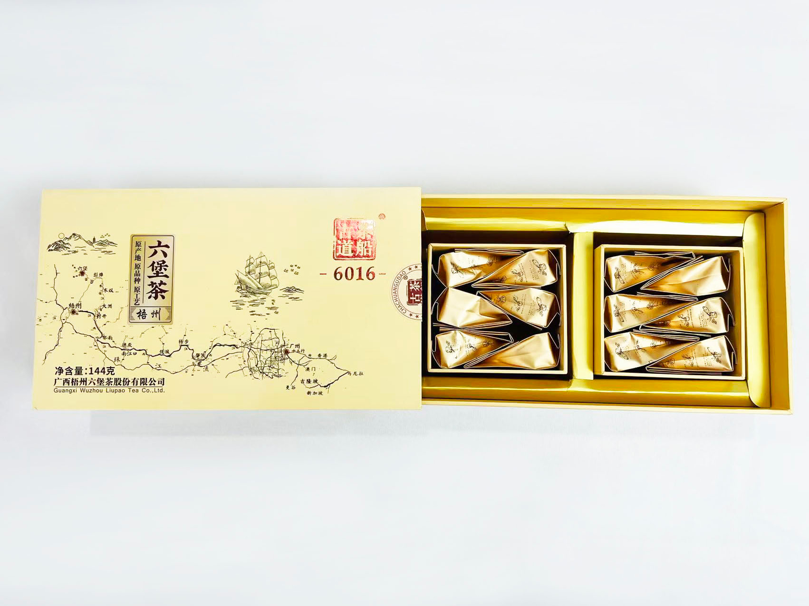 Refined through modern techniques, the tea leaves are dark, tightly rolled, and neatly formed, exhibiting a delicate texture. Each set of two boxes contains 144g, with 16 sets per carton, allowing the traditional Liubao tea to embrace a more youthful essence and integrate seamlessly into contemporary life.